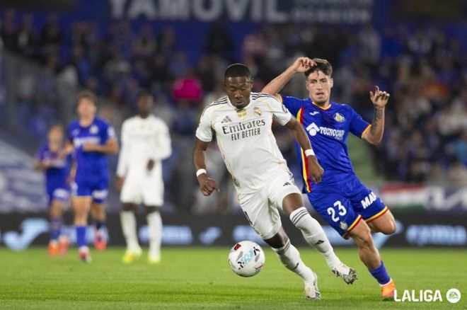 北京时间10月20日凌晨,西甲第9轮继续进行。同样位于马德里地区的赫塔菲主场对阵皇家马德里。在这一场马德里德比中,两队的实力差距很大。近7场联赛交锋,皇马保持全胜,但大多数情况下只赢了2球。赫塔菲本赛季开局不错,前4轮赢了3场,但在接下来的4轮比赛中,赫塔菲只拿到了2分。皇马队新赛季10场比赛除了输给马竞外,其余10场比赛全部获胜。积分榜上,本轮先发的巴萨暂居榜首,与皇马以1分之差排名。面对赫塔菲,罗德里戈首发,维尼修斯替补登场。比赛仅8分钟,姆巴佩接到罗德里戈妙传后高速插上,最后一脚射门被门将扑出。第22分钟,仅仅一秒并且,两名赫塔菲球员在皇马禁区内倒地。赫塔菲球员要求判点球,但裁判明确表示没有犯规。接下来的15分钟,两队的对抗已经足够激烈,但场面却毫无意义,甚至连射门都很少。第38分钟,琼·阿梅内禁区外大力射门。球稍高,颇具威胁。一分钟后,赫塔菲的任意球被解围。桑克里斯不停地踢球,勃然大怒。球就像炮弹一样,可惜这次偏了。上半场补时阶段,皇马获得前场精彩任意球。许久不见的阿拉巴亲吻球射门。球的弧线相当独特。守门员专注于救球。上半场结束,皇马虽然占据绝对优势,但比分还是0-0。下半场开始后,双方o 球队交换进攻和防守。只要赫塔菲有机会,他们也会投资加强进攻。第56分钟,22岁的里佐轻如鸿毛停球,可惜后续射门稍稍偏出。第76分钟,皇马在前场有利位置获得任意球。姆巴佩的射门击中米利唐并改变方向。守门员束手无策,皮球偏出门柱,偏出底线。第77分钟,场上的天平发生倾斜。刚刚出场的尼奥姆撞倒了维尼修斯,被裁判直接红牌罚下。数量上的优势立即显现出来。第80分钟,姆巴佩接到古勒传球后转身起脚射门。球击中球门柱内侧并弹入球门。这也是姆巴佩本赛季九轮西甲比赛中的第10粒进球。四分钟后,桑克里斯对维尼修斯犯规,两黄变红,他也被罚下场。最终,总价值14亿欧元的皇马以1-0击败赫塔菲,取得对德比对手的8连胜。凭借这场胜利,皇马新赛季11场比赛中赢下10场,重回榜首。