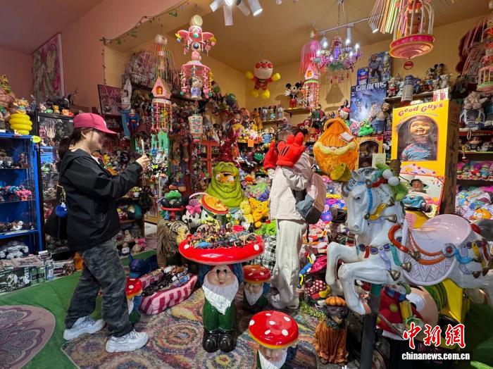 图为游客在张安琪经营的玩具店拍照。杨英奇 摄